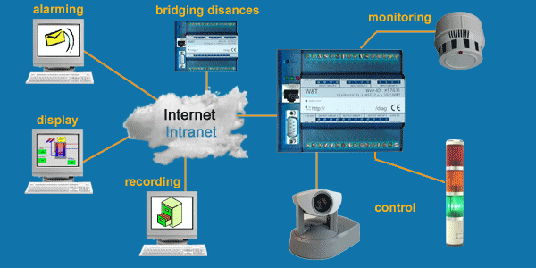 PC.n välityksellä voidaan tarkkailla ja kontrolloida hälytyksiä tai mitä tahansa antureita. Hälytystieto voidaan kontrolloida internet-selaimella tai se voidaan lähettää sähköpostiin tai OPC-serveriin. Hälytystieto voidaan helposti myös integroida mihin tahansa ohjelmistoon, koska WEB-IO paketoi hälytykset joko TCP:tä tai UDP:tä hyväksi käyttäen. Web-I/O:n sovellusmahdollisuudet